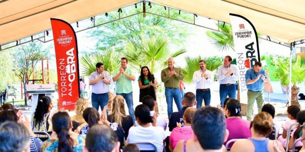 Alcalde de Torreón entrega primera etapa de plaza en fraccionamiento La Perla