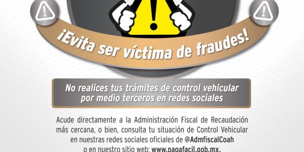 REALIZA TUS TRÁMITES DE CONTROL VEHICULAR A TRAVÉS DE LA ADMINISTRACIÓN FISCAL DE COAHUILA Y EVITA FRAUDES