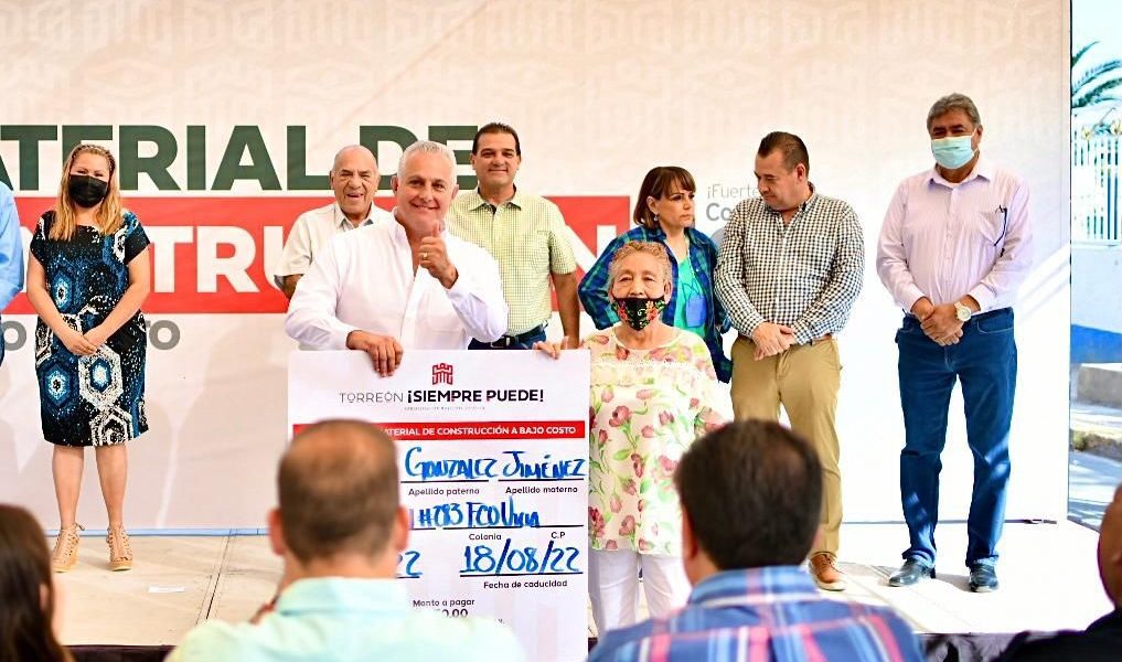 04 agosto 2022; Torreón, Coahuila.-Con una inversión de alrededor de los 10 millones de pesos por parte de la Administración Municipal, el alcalde Román Alberto Cepeda González puso en marcha el Programa de Material de Construcción a Bajo Costo, con el objetivo de mejorar las condiciones de las viviendas de las familias vulnerables de la ciudad.
