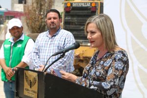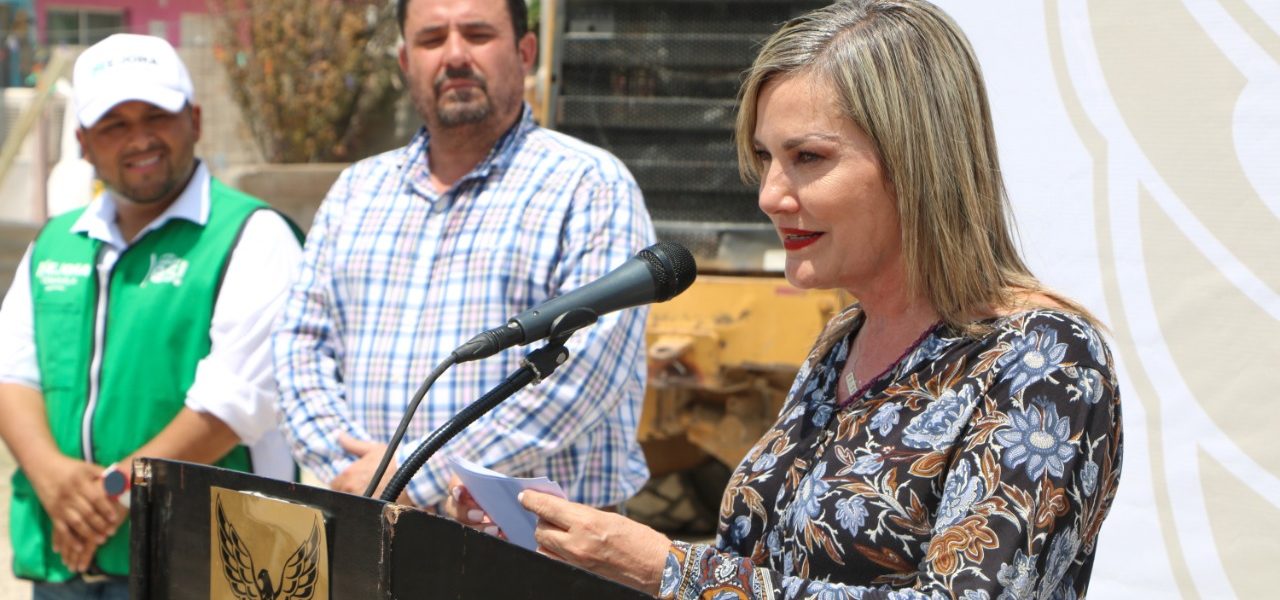 «La colonia Gobernadores queda geográficamente alejada del centro de la ciudad, pero no por ello menos importante, respetando el compromiso del Gobernador Miguel Ángel Riquelme Solís, que hiciera durante el banderazo de arranque de la primera etapa de pavimentación, arrancamos oficialmente los trabajos de cinco cuadras más», afirmó la Alcaldesa.