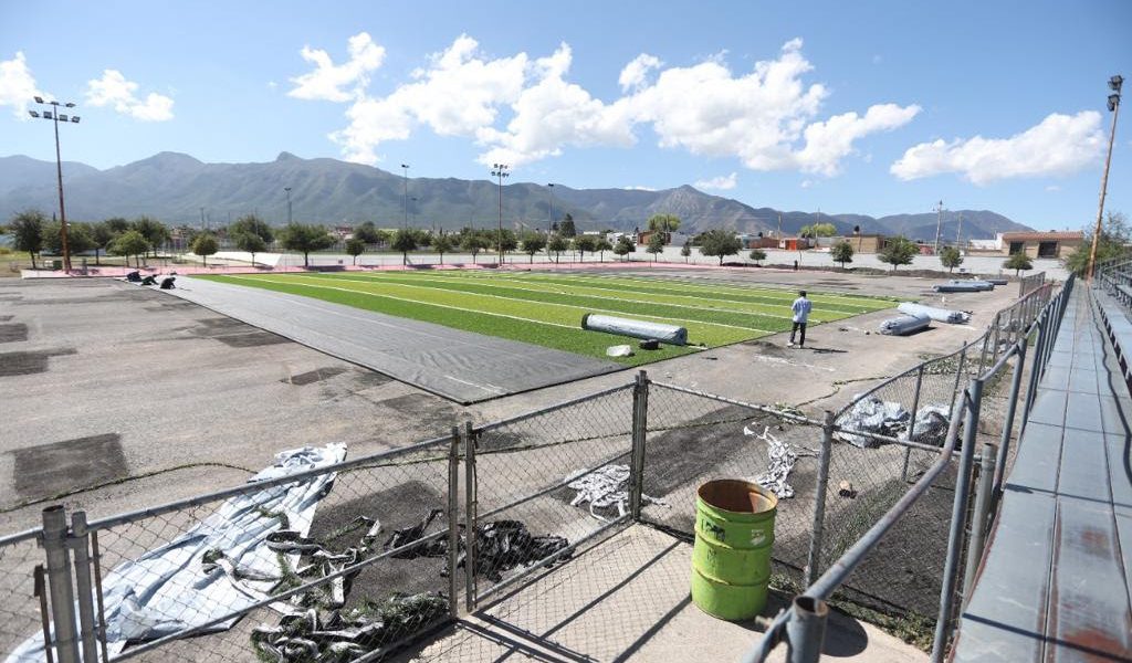 La Dirección de Infraestructura y Obra Pública informó que en el Biblioparque Sur se invierten 3.3 millones de pesos para rehabilitar por completo la cancha de futbol americano.