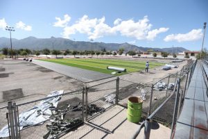 10 agosto 2022; Saltillo, Coahuila.- La renovación del campo de futbol americano del Biblioparque Sur ya supera el 50 por ciento de avance y es cuestión de semanas para que cientos de deportistas puedan disfrutar las instalaciones, destacó el alcalde José María Fraustro Siller.