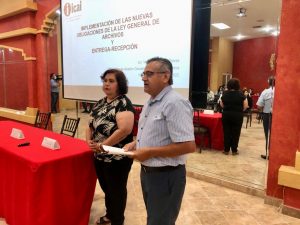 17 agosto 2022; Piedras Negras, Coahuila.-El Instituto Coahuilense de Acceso a la Información Pública, ofreció un curso sobre la nueva Ley General de Archivos y Entrega Recepción, dirigido a funcionarios de la región norte, impartido por la Directora de Gestión Documental y Procedimientos del Recursos de Revisión, Verónica Ramos Torres, el cual esta dirigido a todos los sujetos obligados como: instituciones, ayuntamientos, sistemas municipales de agua, universidades e institutos.