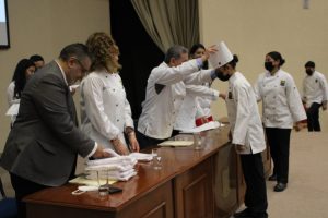 Durante el evento se realizó la entrega de los gorros de cocineras y cocineros a los 100 alumnos que iniciarán sus estudios en la Licenciatura, así como la inauguración de la cocina, cabe mencionar que el padrino de esta primera generación es Rodolfo Onofre, quien es chef lagunero con amplia experiencia y trayectoria, fue responsable de la cocina en Los Pinos, con los entonces presidentes, Vicente Fox, Felipe Calderón y Enrique Peña Nieto.