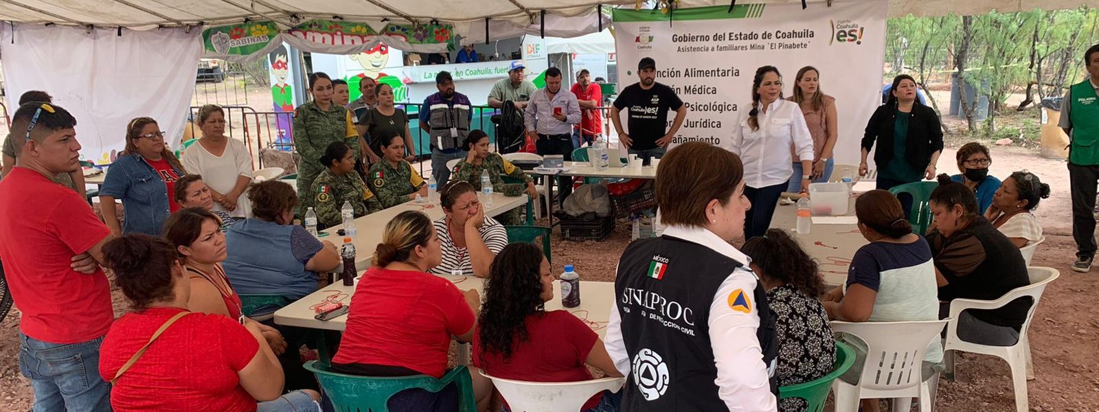 20 agosto 2022; Sabinas, Coahuila.- El Mando Unificado del Equipo Interinstitucional de Rescate mantiene comunicación con las familias; informa, por lo menos dos veces al día, sobre los avances en los trabajos que se realizan encaminados a rescatar a los 10 mineros atrapados en “El Pinabete”.