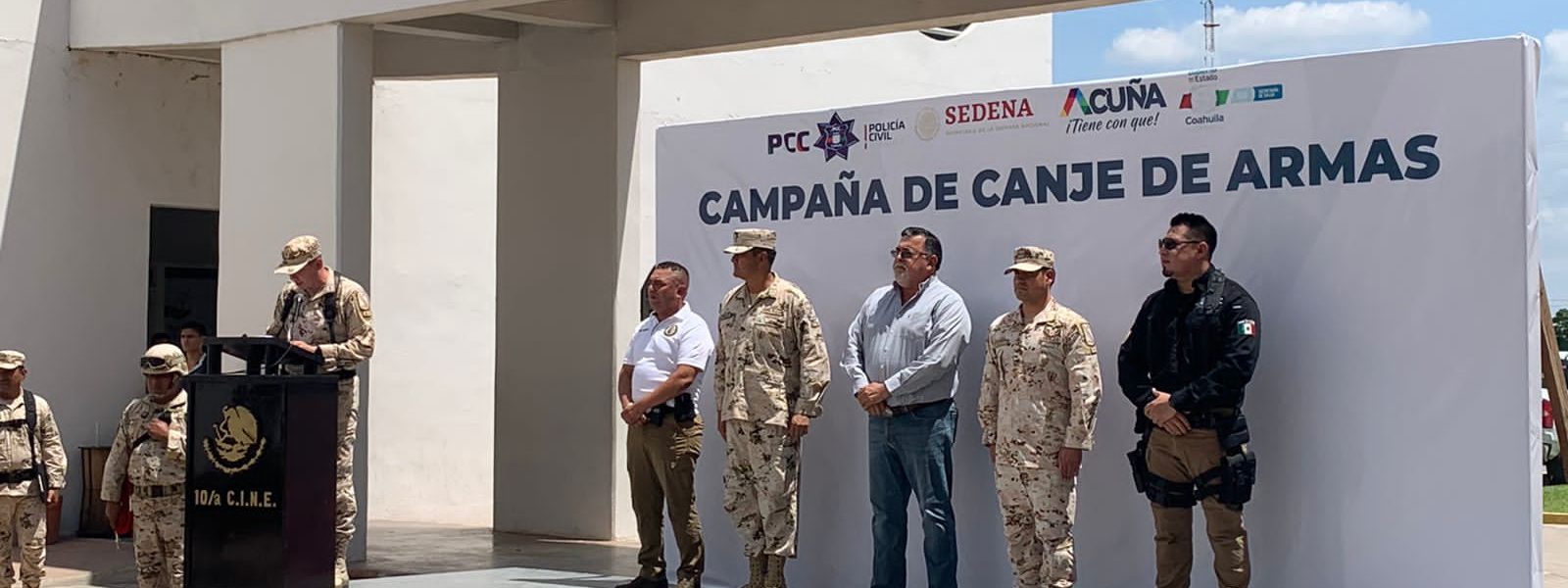 24 agosto 2022; Acuña, Coahuila.- Las tres instancias de gobierno pusieron en marcha la Campaña de Canje de Armas, que, durante seis días a la semana, y hasta el mes de noviembre, permanecerá en Acuña.
