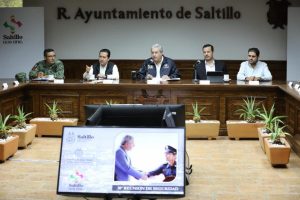 En la reunión semanal de seguridad participó el secretario del Ayuntamiento, Carlos Estrada Flores; el tesorero municipal, Juan Carlos Villarreal Garza; representantes del Ejército Mexicano y de la Guardia Nacional; y la directora del Consejo Cívico de Instituciones de Coahuila, Sara Arizpe Ramos.