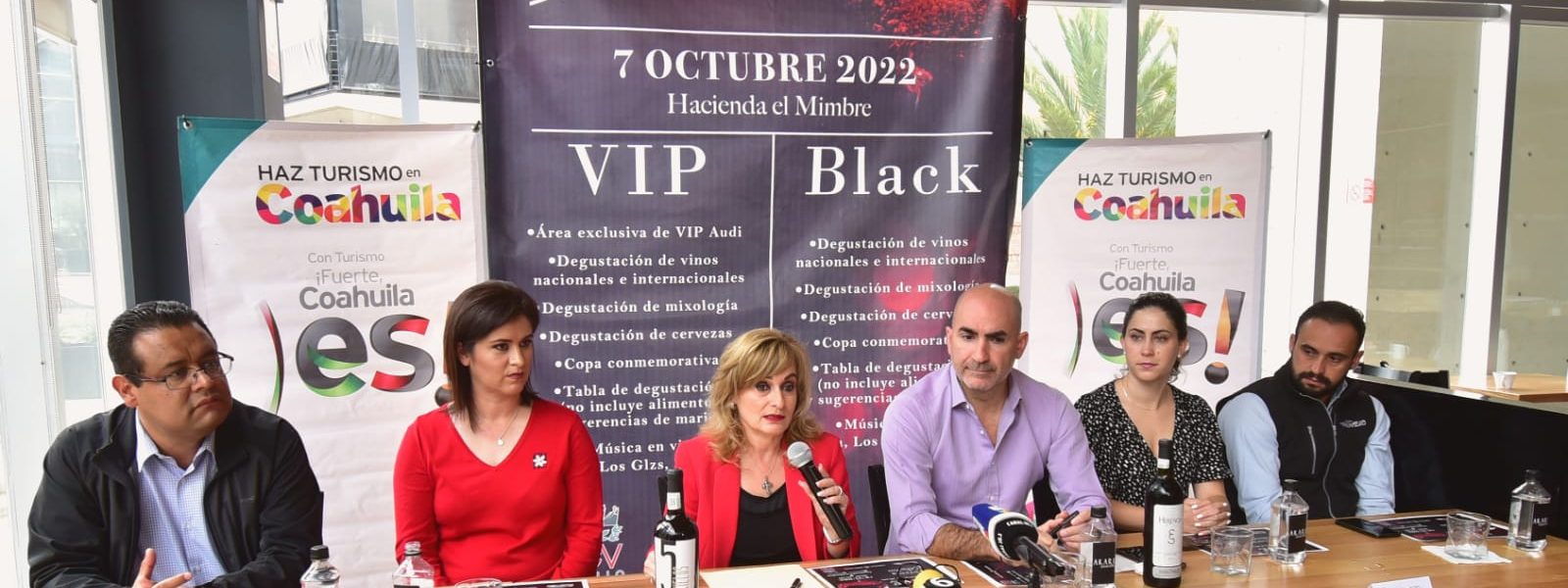 Presidieron la conferencia de prensa, la Secretaria de Turismo y Desarrollo de Pueblos Mágicos de Coahuila, Azucena Ramos Ramos; Mario Mata, Director de Fomento Económico y Turismo de Saltillo; y Alejandra Sánchez, sommelier y organizadora del evento, entre otros.