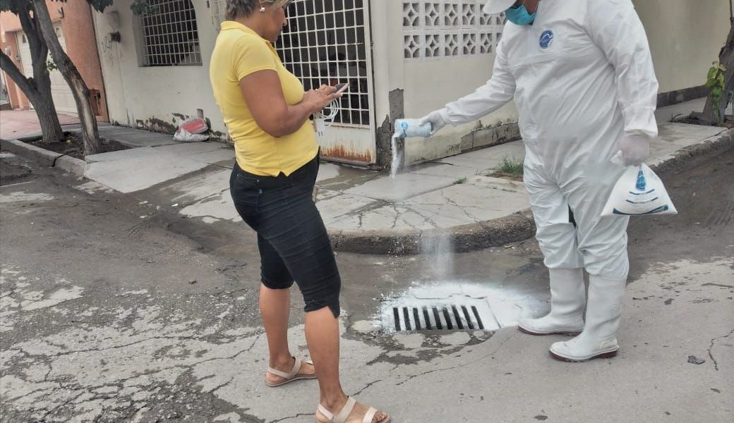 08 septiembre 2022; Torreón, Coahuila.-La Dirección de Salud Pública Municipal comenzó con acciones preventivas en diferentes sectores de la ciudad, para eliminar la turbiedad en las aguas de lluvia y además evitar la proliferación de moscos transmisores de enfermedades.