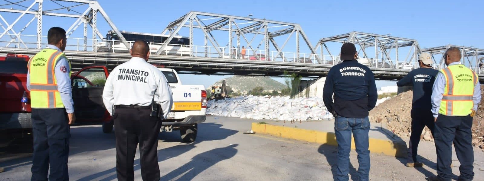 “Así fue la indicación del alcalde Román Alberto Cepeda González, que se tomen todas las medidas preventivas y es así como desde el día de ayer se está trabajando en el vado del Río Nazas, en el puente plateado del lado de Torreón colocando costales de arena para que el agua que llegue no genere un peligro”, mencionó el titular.