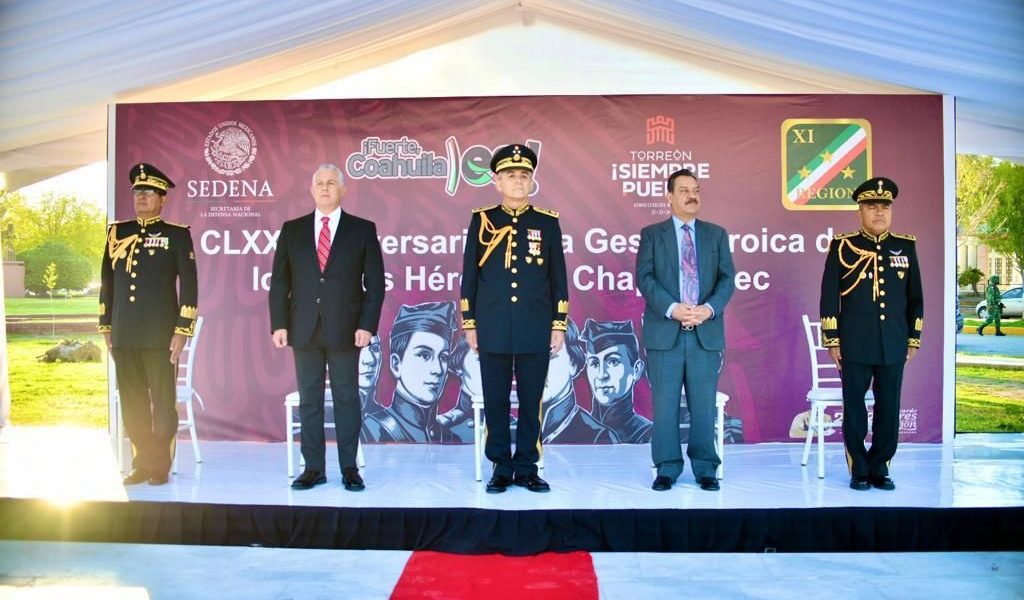 Al evento que se realizó en el Monumento a los Niños Héroes, ubicado en la Plaza de la Tortuga, acudieron también el General Brigadier Diplomado Estado Mayor Rogelio García Pérez, Comandante del Mando Especial de La Laguna; Fernando de las Fuentes Hernández, Secretario de Gobierno del Estado de Coahuila; Coronel de Infantería Diplomado Estado Mayor Elías Alejandro Palomares Villegas, Comandante del 33 Batallón de Infantería, así como integrantes del Ayuntamiento, funcionarios estatales y municipales, así como jefes, oficiales y tropa de la Onceava Región Militar.