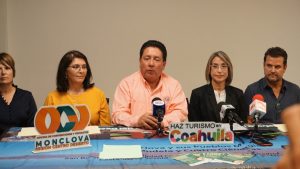 Le acompañaron Enrique Ayala, en calidad de presidente de la Oficina de Convenciones y Visitantes Monclova; José Arellano presidente de la Unión de Organismo Empresariales de Monclova; Emilio Campos, presidente de Touroperadores de Coahuila; Yolanda Cantú, Directora de Turismo en la Región Centro-Desierto, y Ramiro Reyes, Alcalde de Abasolo, así como integrantes del área de turismo de los municipios que conforman esta denominada Ruta del Desierto.