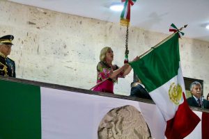 Luego de las arengas a voz de la Alcaldesa, se entonó el himno nacional, para después despedir a nuestra enseña patria.