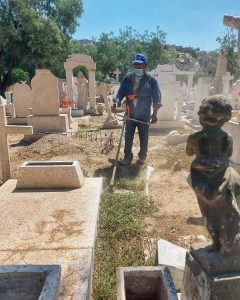 03 octubre 2022; Torreón, Coahuila.-A un mes del “Día de Muertos”, y previendo el aumento de visitantes a los camposantos, la Dirección de Servicios Públicos Municipales, intensificó las labores de mantenimiento en los panteones 1 y 2 de Torreón.