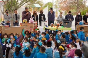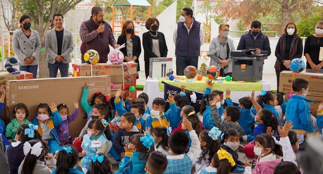 Con esto se contribuye a mejorar las condiciones de los planteles, en esta ocasión se equipó con cuatro minisplits, copiadoras y material deportivo, para el Jardín de Niños, en ambos turnos, esto permitirá a las y los maestros tener un mejor proceso de enseñanza y a las niñas y niños de aprendizaje.