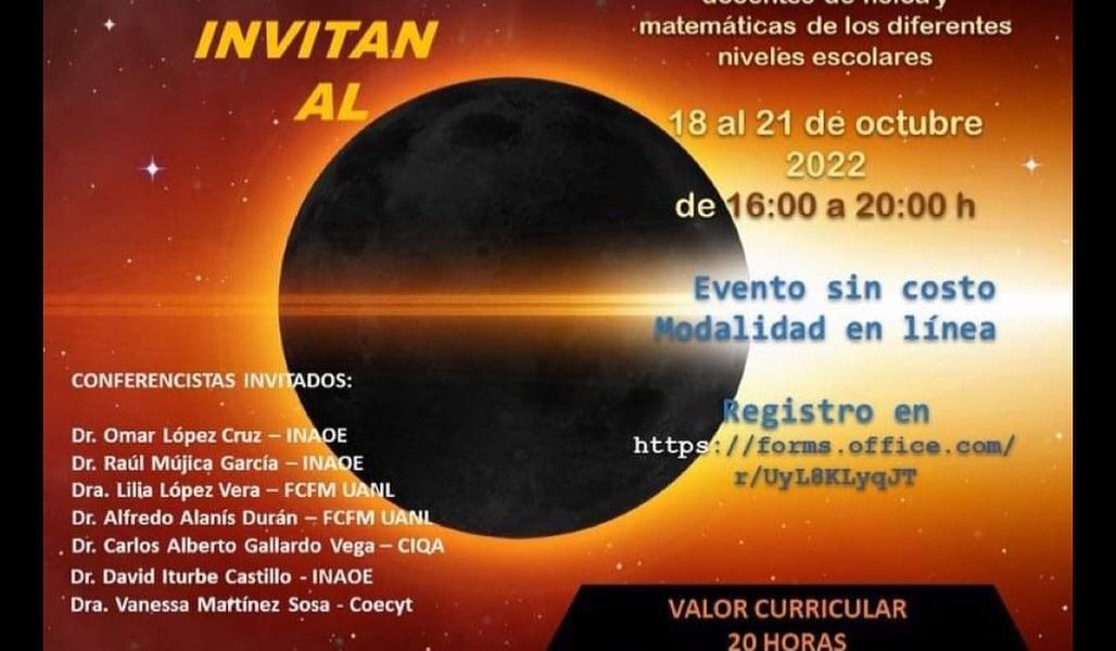 Durante el encuentro se contará con la participación de los siguientes conferencistas: del Instituto Nacional de Astrofísica, Óptica y Electrónica (INAOE), el Dr. Omar López Cruz, Dr. David Iturbe Castillo y el Dr. Raúl Mújica García; de la Facultad de Ciencias Físico Matemáticas de la Universidad Autónoma de Nuevo León, Dra. Lilia López Vera y el Dr. Alfredo Alanís Durán.