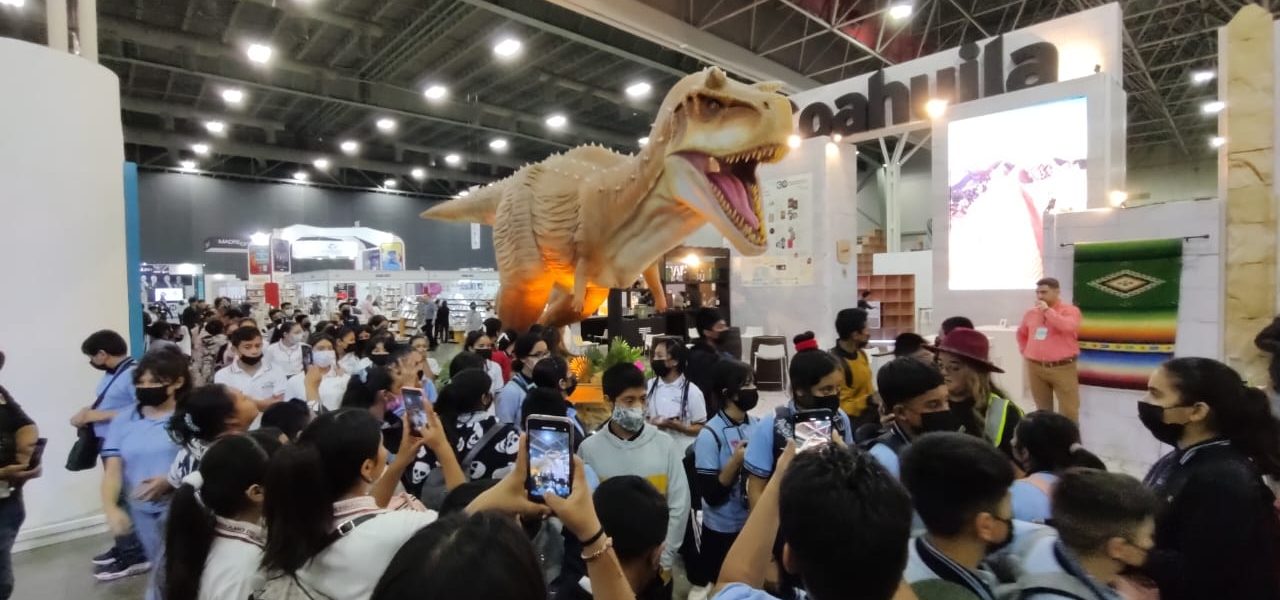 Salvador Álvarez de la Fuente, Director de Animación Cultural de la SC y coordinador de este importante proyecto, comentó: “ Para Coahuila es muy importante recibir en nuestro pabellón la visita de tantas personas, pues si bien en un principio lo que más llama la atención es el dinosaurio robotizado, una vez que están en el pabellón lo recorren con gran interés, pues en él descubren además la riqueza paleontológica de Coahuila, los telares en los que se tejen los reconocidos Sarapes de Saltillo, conocen los vinos de Coahuila y disfrutan de la gran producción editorial que el Gobierno del Estado presenta en esta feria”.