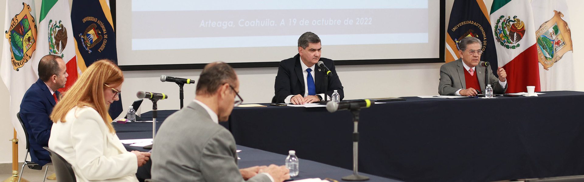 20 octubre 2022; Arteaga, Coahuila.- Este miércoles la Universidad Autónoma de Coahuila fue sede de la Segunda Sesión Ordinaria 2022 del Consejo Regional Noreste de la Asociación Nacional de Universidades e Instituciones de Educación Superior (ANUIES), la cual se realizó de manera presencial en la Infoteca Campus Arteaga y virtual a través de Zoom.