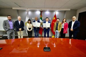 21 octubre 2022; Monclova, Coahuila.-Con el fin de generar políticas públicas en materia de desarrollo, en el plano comercial, laboral, cultural y educativo, el alcalde de Monclova, Dr. Mario Dávila Delgado y Qiyin Zhao, de Wanzow China, firmaron la carta de intención de hermanamiento, entre las ciudades de Monclova Coahuila, y Wanzow China.