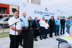 25 octubre 2022; Acuña, Coahuila. – Relevante para mantener un acercamiento entre Gobierno Municipal e instituciones educativas es el programa Contigo en la Escuela, que llegó a la Primaria Octavio Paz de la colonia San Antonio, con acciones de limpieza y rehabilitación, y la entrega material deportivo y de higiene.