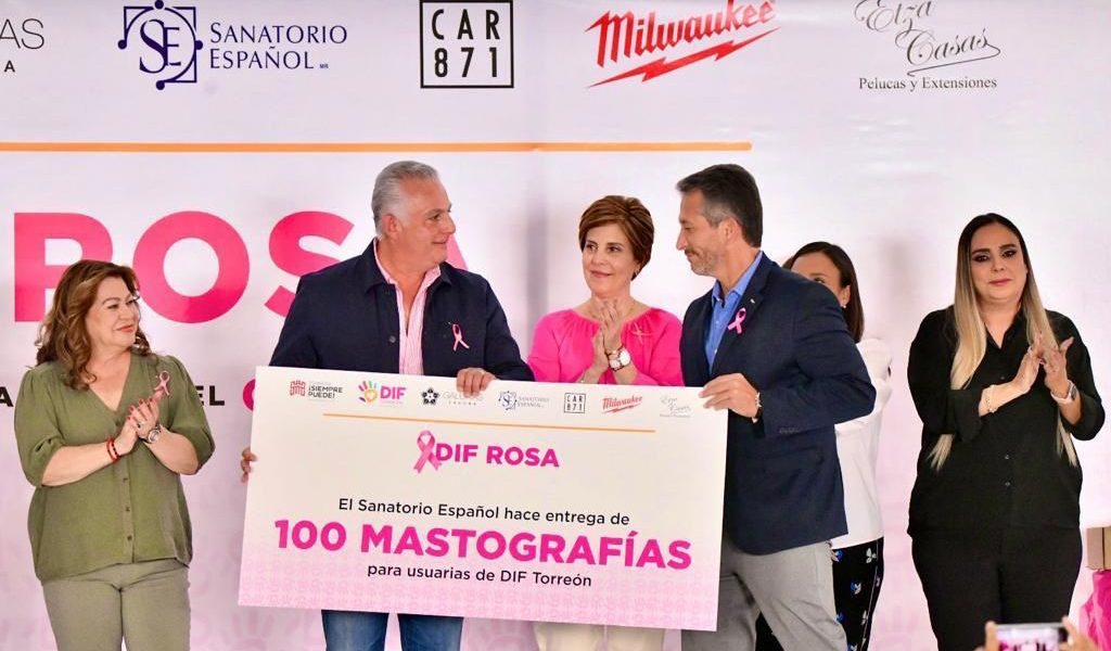Lo anterior durante el evento denominado “Somos DIF… Vamos por el rosa”, en el que acompañó a la Presidenta Honoraria del Sistema para el Desarrollo Integral de la Familia de Torreón (DIF), la señora Selina Bremer de Cepeda.