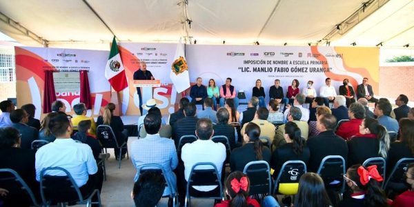 Entregan obras de infraestructura e imponen nombre de Manlio Fabio Gómez Uranga a escuela de Torreón