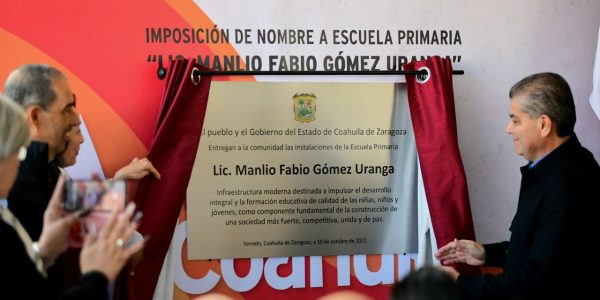 INAUGURA MARS OBRAS DE INFRAESTRUCTURA EDUCATIVA E HIDRAÚLICA POR MÁS 15 MDP Por Alberto Casas 11 octubre 2022; Torreón, Coahuila.- El gobernador Miguel Ángel Riquelme Solís impuso el nombre “Lic. Manlio Fabio Gómez Uranga” a una escuela primaria en Torreón,…