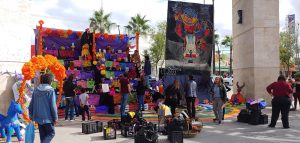 Fueron los alumnos de diseño y sus maestros los encargados de realizar este altar, donde además relataran la diferencia que existe entre un altar prehispánico y un altar tradicional religioso.