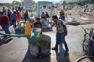 La Dirección de Servicios Públicos se encuentra presente con pipas de agua tratada, y previamente implementó acciones de limpieza, desmalezado, aplicación de pintura, rehabilitación de bardas perimetrales, instalación de alumbrado de reflectores, entre otras.