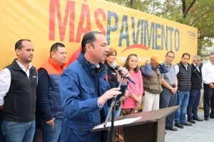 El alcalde Emilio de Hoyos Montemayor y el director de Obras Públicas Carlos Flores Jiménez; vecinos del lugar, su equipo de trabajo y regidores, pusieron en marcha los trabajos de pavimentación asfáltica en las calles Baja California, entre Chalco y Jesús Fernández Cuevas; y en la Jesús Fernández Cuevas, entre Cuarentenaria y Celaya.