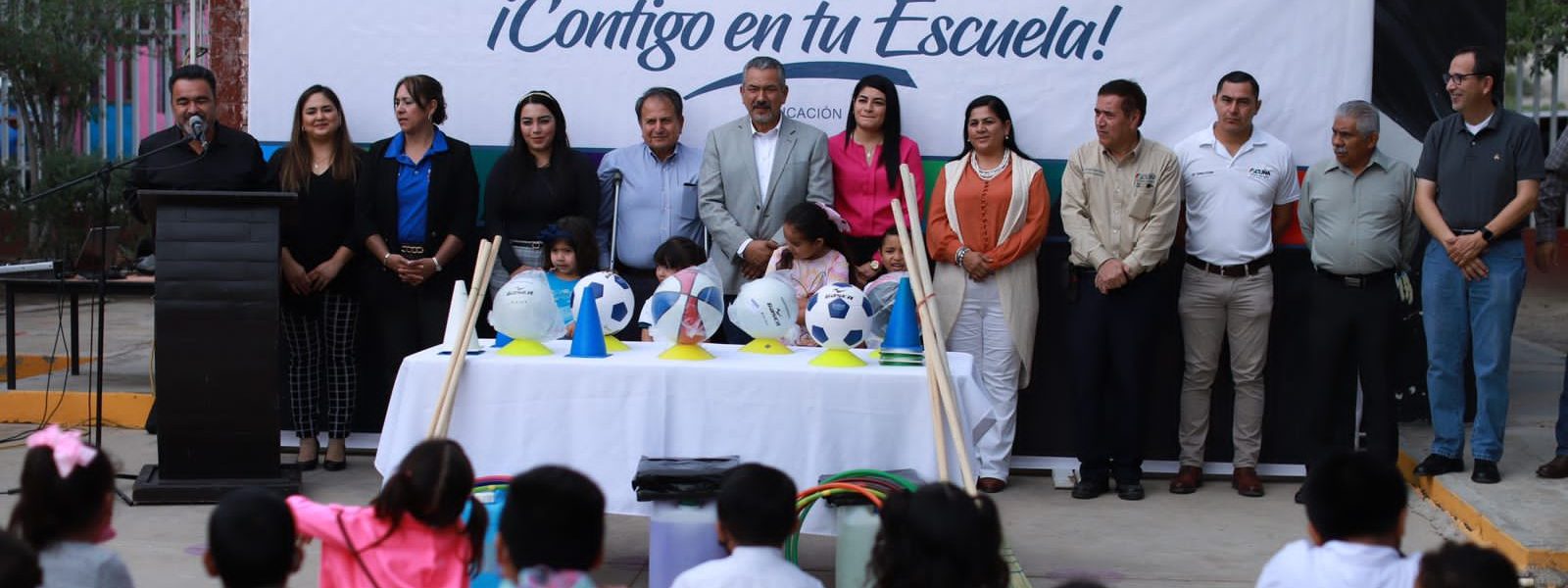 Programa coordinado por la Dirección de Educación, a cargo de Jazmín García García, que constituye la jornada número quince, llevada a planteles educativos de educación básica. Este día se realizó tarea de poda de árboles, pintura de módulos de juegos infantiles y la entrega de material de limpieza y deportivo.