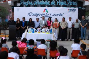 08 noviembre 2022; Acuña, Coahuila.- Gracias por invertir para que estemos en mejores condiciones en nuestra escuela, gracias, por invertir en nosotros que somos el presente de Acuña y de México, afirmaron estudiantes del Jardín de Niños «Profa, Arabela de Peña Flores» de la colonia Porvenir, al dar la bienvenida a titulares de dependencias que participaron en el Programa Contigo en la Escuela.