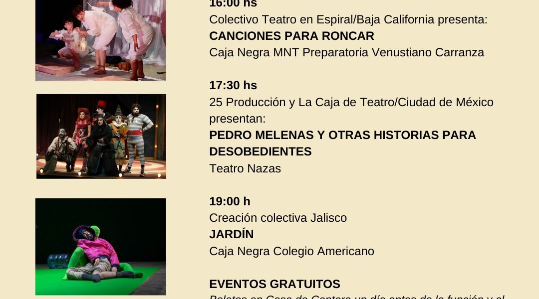 La Secretaria de Cultura de Coahuila, Ana Sofía García Camil, dio: “Las actividades que se presentarán el domingo, el lunes y el martes, son sumamente interesantes, por eso invito al público a aprovechar estas presentaciones de lo mejor del teatro en México”.