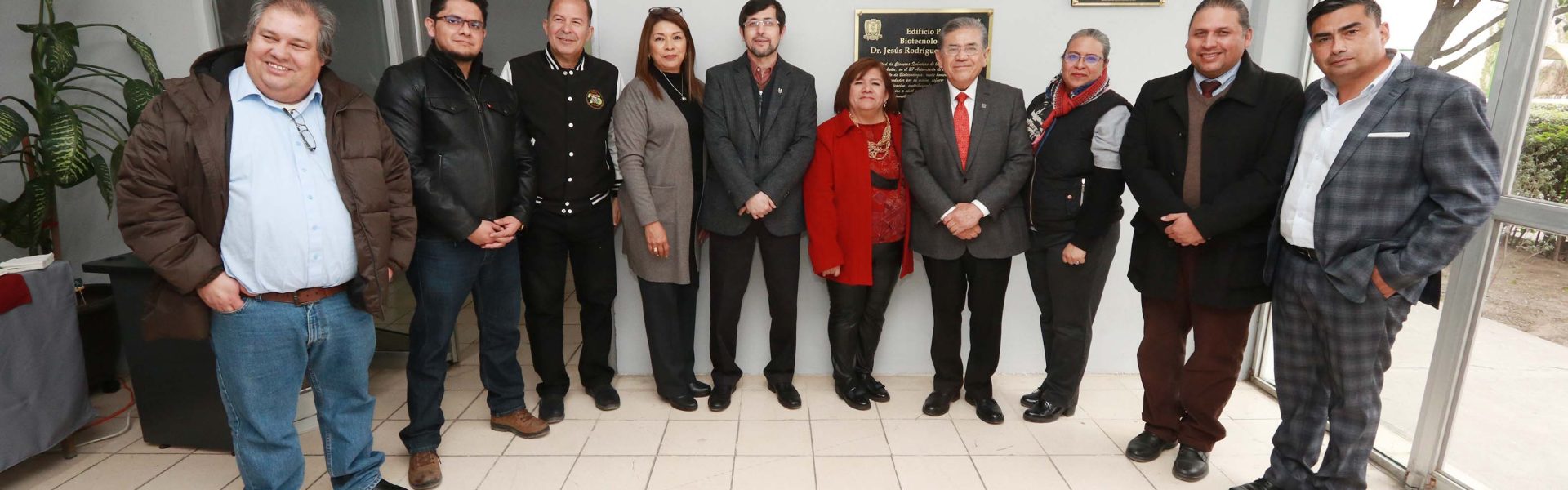 La develación de la placa estuvo a cargo del rector de la máxima casa de estudios, Salvador Hernández Vélez, el director de la Facultad, Gerardo de Jesús Sosa Santillán y la encargada del Departamento de Biotecnología, la Dra. Ileana Mayela Moreno, teniendo como testigos, al coordinador de la Unidad Saltillo, Julio Saucedo Zul, docentes y alumnado del plantel.