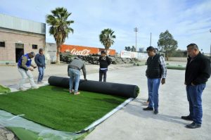 En esta visita se percibió, se empezará a instalar el pasto sintético en la cancha de fútbol el cual cumple con las especificaciones que exige la Federación Internacional de Fútbol Asociación (FIFA).