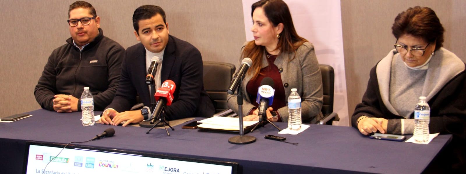 En rueda de prensa, la Secretaria del Trabajo en Coahuila, Nazira Zogbi Castro, junto al Director de Vinculación de la Secretaría de Turismo y Desarrollo de Pueblos Mágicos del Estado, Miguel López, informaron lo anterior.