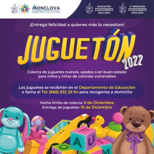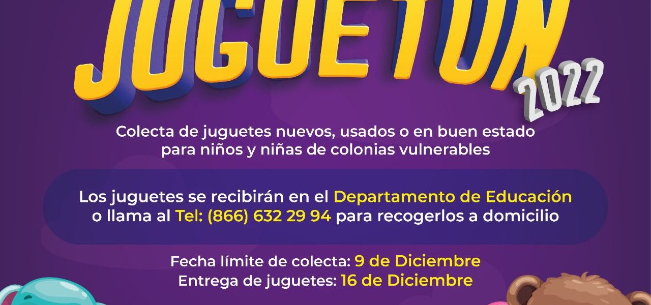 Agregó que la fecha para límite hacer las donaciones, será el 09 de diciembre, y se estarán recibiendo en la oficina de la dirección de Educación, o pueden llamar al 866 632 29 94, para mayor información, la fecha en que los juguetes serán entregados será el 16 de diciembre.