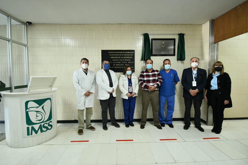 En la develación de la placa conmemorativa, estuvieron: el alcalde, Dr. Mario Dávila, Dr. Rodolfo Daniel Díaz, jefe de prestaciones médicas; C.P. Luis Enrique Martínez Cedillo, Sub delegado del IMSS, Monclova; Lic. Sandra Yaneth Alvizo, titular del departamento delegacional de prestaciones sociales y el director del Hospital de Zona, número 7, Dr. Víctor Manuel Barbachano, entre otros funcionarios.