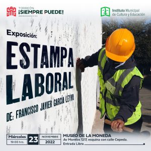 23 noviembre 2022; Torreón, Coahuila.-El R. Ayuntamiento de Torreón, a través del Instituto Municipal de Cultura y Educación presentan la exposición “Estampa laboral” del joven artista Francisco Javier García Leyva, que será inaugurada hoy 23 de noviembre a las 19:00 horas en el Museo de la Moneda, ubicado en el Edificio Banco de México (Avenida Morelos y Cepeda).