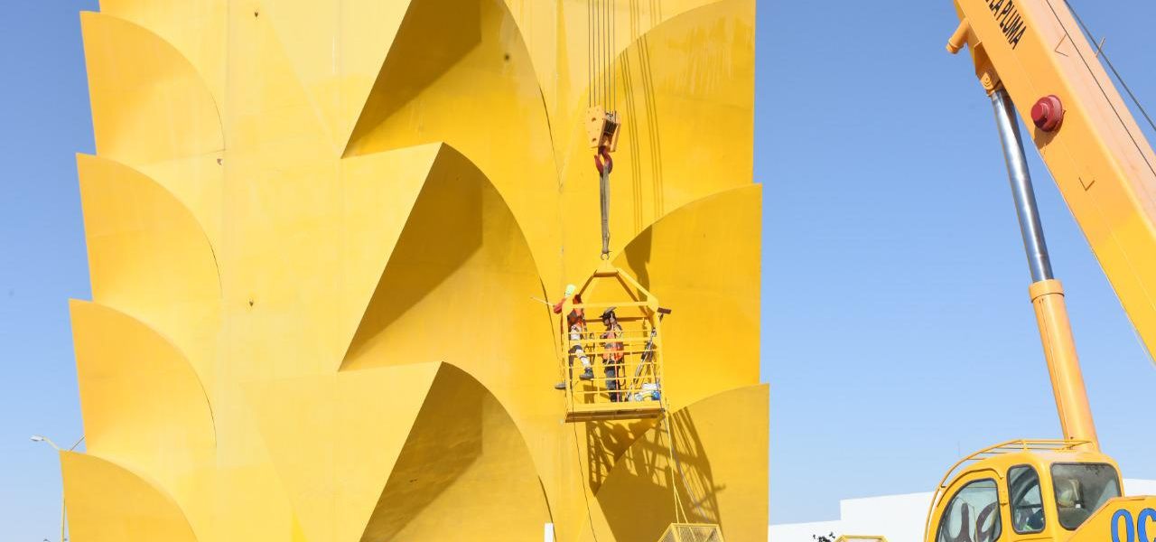 Actualmente se implementan acciones de limpieza, lijado de fondo y aplicación de pintura amarilla en la escultura de 40 metros de altura.