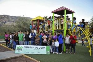 30 noviembre 2022; San Pedro, Coahuila.-Para contar con espacios recreativos para las familias de las comunidades rurales, el gobierno municipal llevó a cabo la entrega de un parque infantil en el ejido Nuevo Delicias, cumpliendo el compromiso adquirido con la comunidad, para la alegría de los niños y niñas, dentro del programa 100 Obras para San Pedro.