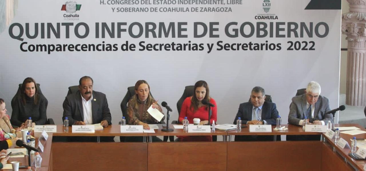 02 diciembre 2022; Saltillo, Coahuila.-En Coahuila se garantiza la seguridad de todos sus habitantes, sus indicadores lo posicionan cómo una de las entidades más seguras a nivel nacional; además de mantener un trabajo coordinado con el Ejército Mexicano, la Guardia Nacional y los tres órdenes de Gobierno, así lo destacó, Sonia Villarreal Pérez, Secretaria de Seguridad Pública, al comparecer ante los diputados de la LXIX Legislatura del Congreso local para realizar el análisis del Quinto Informe de Gobierno del Ejecutivo Estatal.