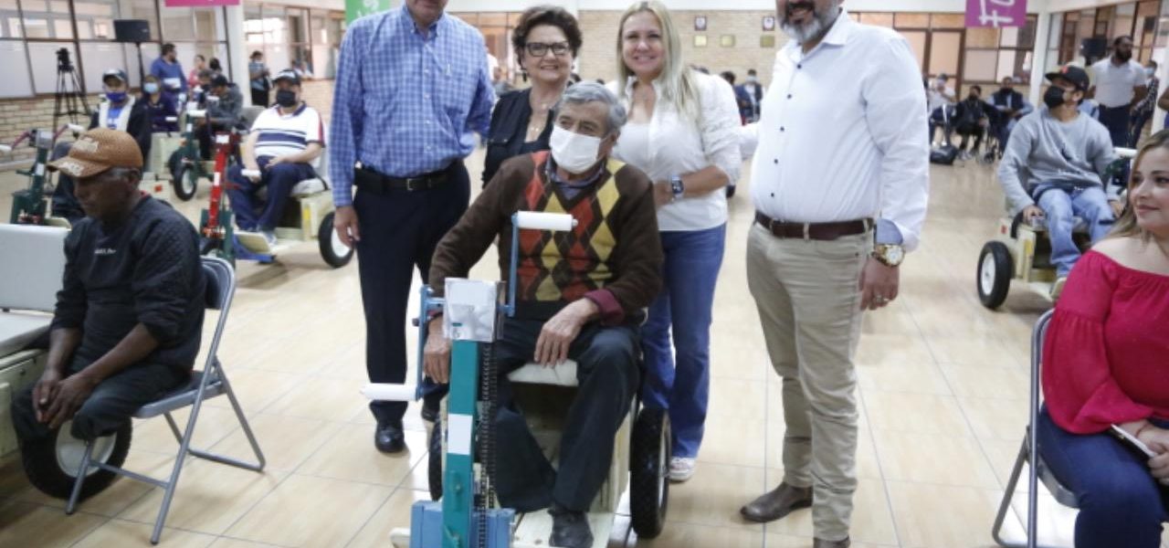 Respecto a la entrega de aparatos funcionales para personas con discapacidad, destacó que se han otorgado más de 2 mil 100 sillas de ruedas tipo PCI, PCA, convencionales y, recientemente, alrededor de 120 sillas de ruedas de trabajo en todas las regiones.