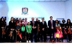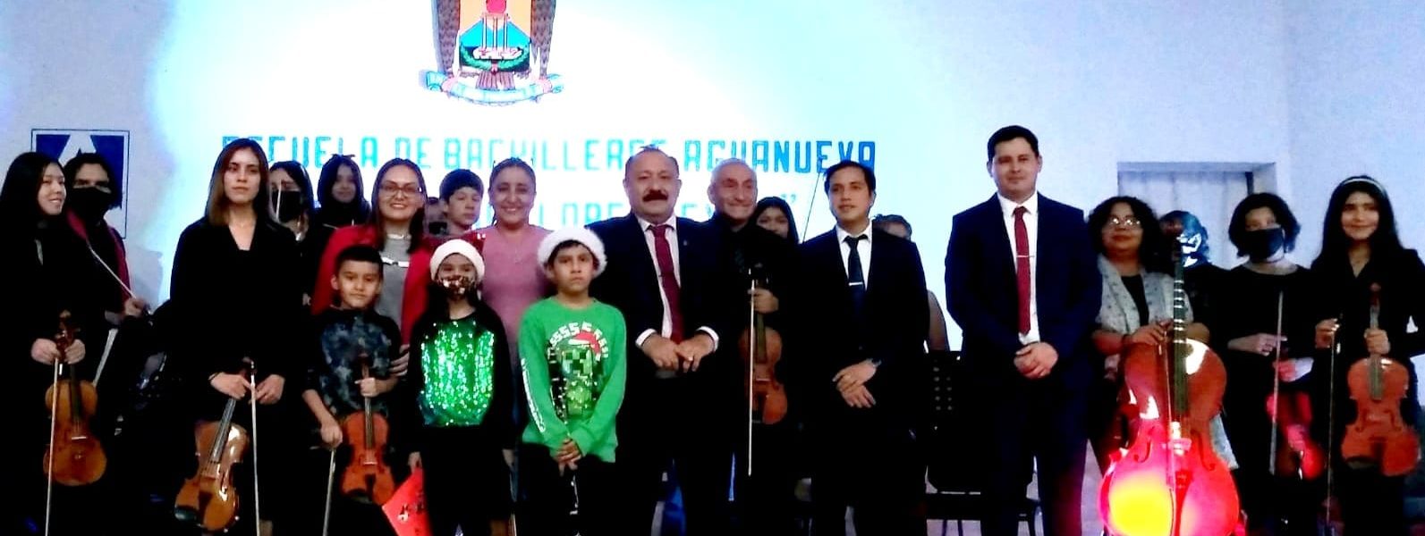 06 diciembre 2022; San Pedro, Coahuila.-La Orquesta Sinfónica Municipal de San Pedro, realizó una participación especial en el evento «Noches de las Estrellas», organizado por la escuela de Bachilleres Aguanueva.