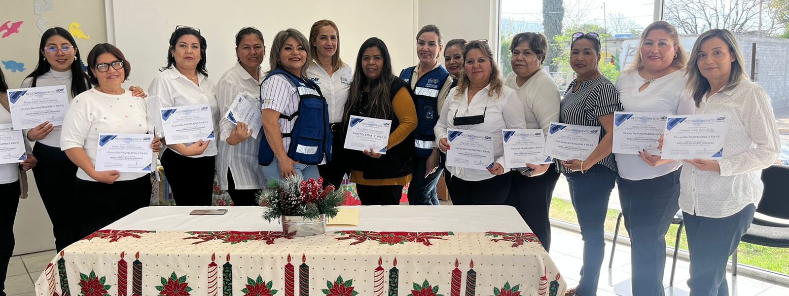 14 diciembre 2022; Monclova, Coahuila.-Luego de asistir a 40 horas de clase, 11 alumnas terminaron el curso de pastelería y pays en CEDIF Norte bajo bajo la organización de la coordinadora Evelyn Saldúa.