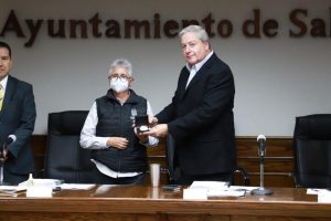 16 diciembre 2022; Saltillo, Coahuila.- El Cabildo de Saltillo, encabezado por José María Fraustro Siller, entregó el Galardón Zapalinamé al Servidor Público Municipal 2022 en las categorías En Vida, a Elizabeth Mellado Moya, y Post Mortem a Santiago Muñiz Vázquez.