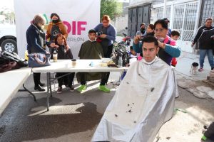 DIF Torreón ofreció los servicios de óptica a bajo costo, asesoría jurídica gratuita, corte de cabello gratuito, lotería y se hizo entrega de 300 litros de leche, 100 piezas de ropa en excelente estado y 60 juguetes para las y los niños que asistieron al evento, además de la entrega de dos sillas de ruedas destinadas para una persona con discapacidad motriz y otra para un adulto mayor.