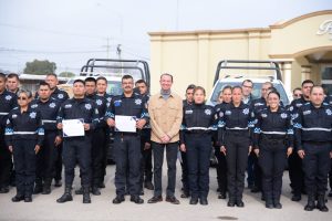 Reconoció el sentido de lealtad y compromiso de los elementos, y dijo: Contarán siempre con el respaldo de su gobierno. «Sigamos construyendo la corporación de seguridad pública de la que los acuñenses se sientan seguros».