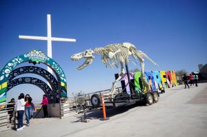 “Esta semana es cuando más hemos tenido visitantes; el gobernador Miguel Riquelme estuvo de visita el día 1 de enero y fue donado el ‘huesitos’ a Puerto Noas. Se trata de un esqueleto de un tiranosaurio rex para el deleite de todas y todos”.
