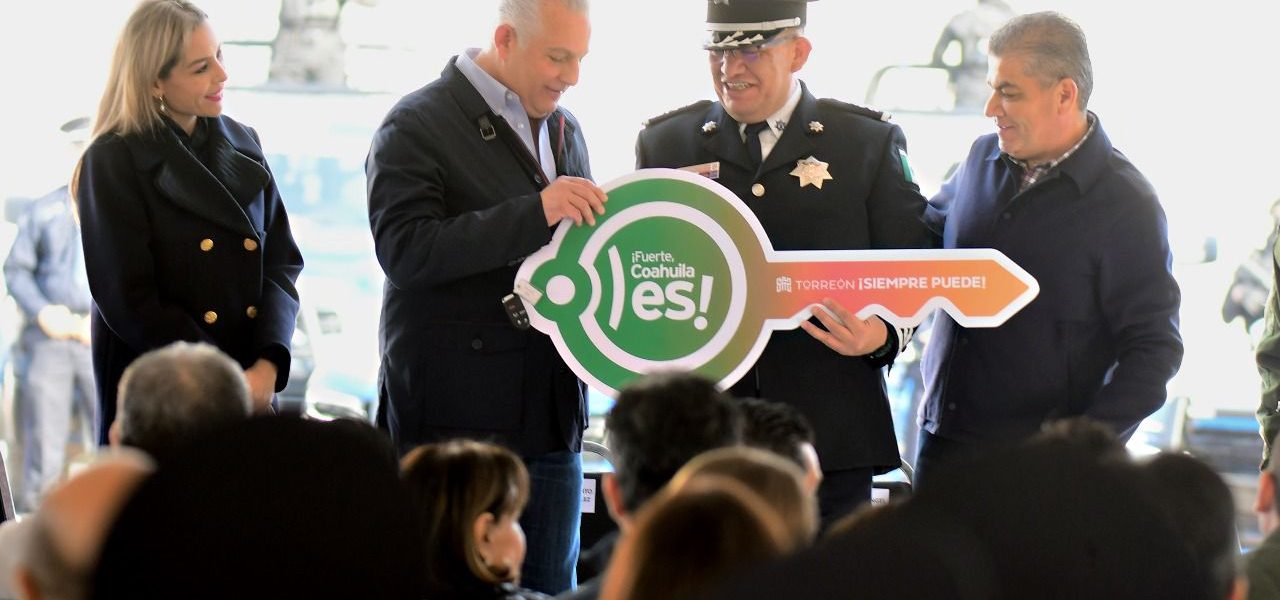 ENTREGAN MIGUEL RIQUELME Y ROMÁN CEPEDA PATRULLAS A LA POLICÍA DE TORREÓN